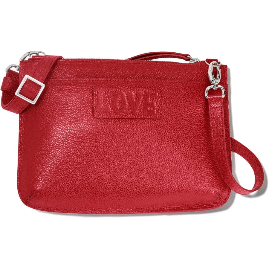 Love is all you need – and this gorgeous pouch in lipstick red with textural words of love that will put a smile on your face each time you look at it.