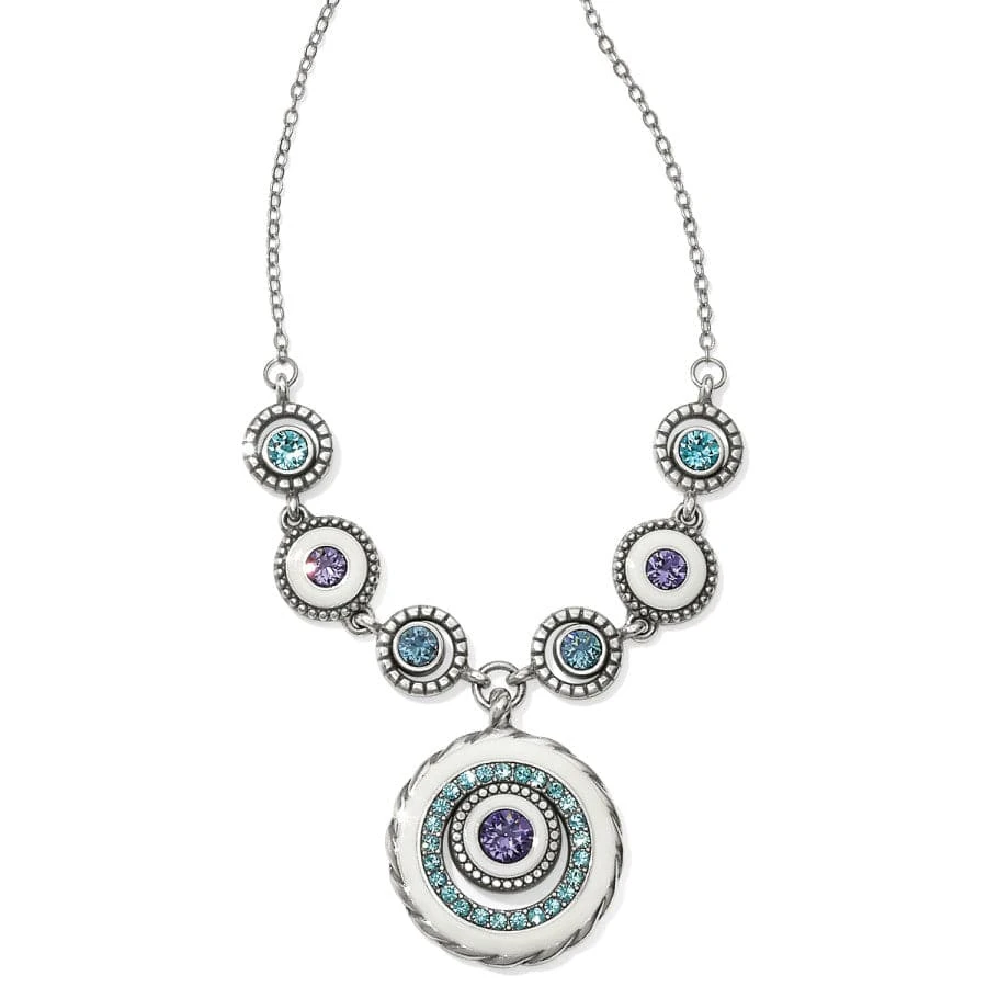The colors of this piece are inspired by the sunlit sky, full of bright and vibrant blues made more prominent next to hand-painted white enamel on the perimeter.