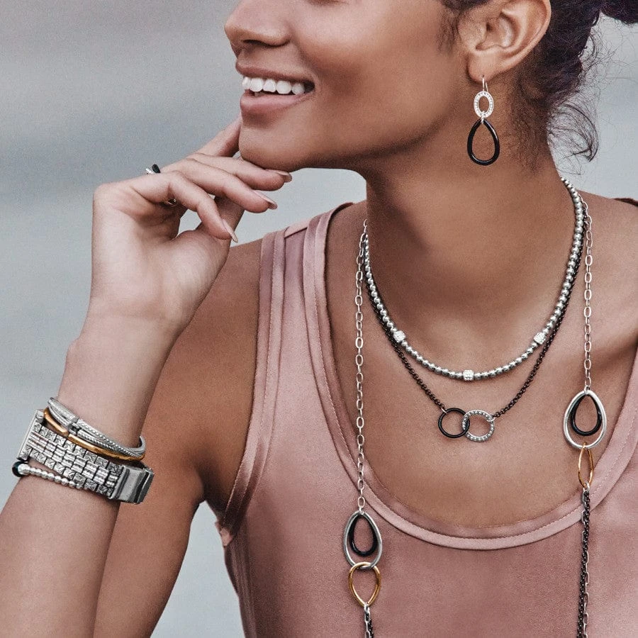 Silver and black hoops are just a little bold – perfect for Zooms.